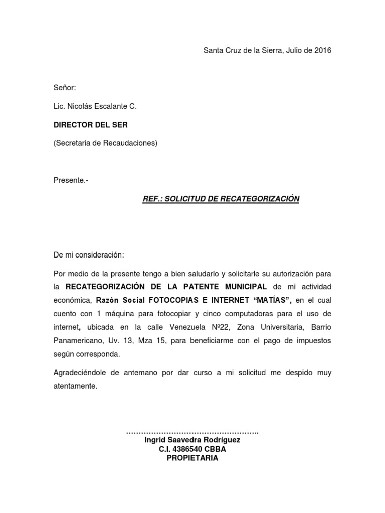 Costo en descarga de drenaje de 6 de diámetro y hasta 6 metros de longitud, consultar el resolutivo tarifario. Para lo cual detallo mis datos. Modelos de carta de solicitud de permiso. En determinados momentos de nuestra vida, nos callamos emociones y sentimientos hacia algo o hacia alguien por miedo a enfrentamientos, al rechazo, al abandono, a la soledad, a perder prestigio, al que dirán, etc… sin darnos cuenta que estamos alimentando nuestra sombra. En nuestro acontecer necesario, las solicitudes varían de una a otra dependiendo de la necesidad que se nos presente en ese momento.